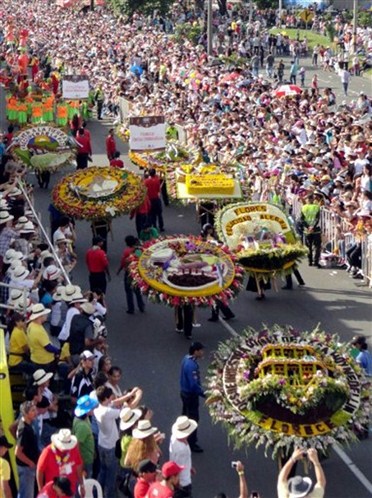 En este desfile, reconocido desde 2003 como patrimonio cultural de Colombia, más de 500 campesinos de la vereda de Santa Elena, cercana a Medellín, acarrean a la espalda pesados arreglos florales sobre una estructura parecida a una silla.