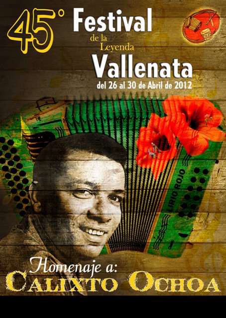 como aquel campesino que solamente tiene la esperanza de mostrarle al mundo que es un hombre con orgullo y capaz de vencerlo todo con sus bellas canciones. Utilicé el fondo del afiche color madera que demuestran los tiempos aquellos, también aparece un elemento vital como el acordeón y unas notas dándole el efecto como si fuera pintado, también lirios rojos y los colores más adecuados para que sea la más viva imagen de esta inigualable fiesta vallenata”.