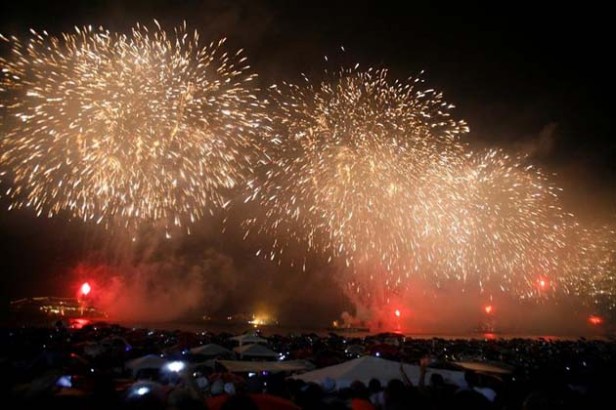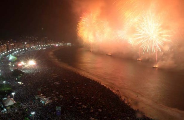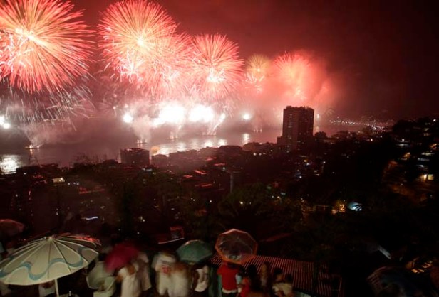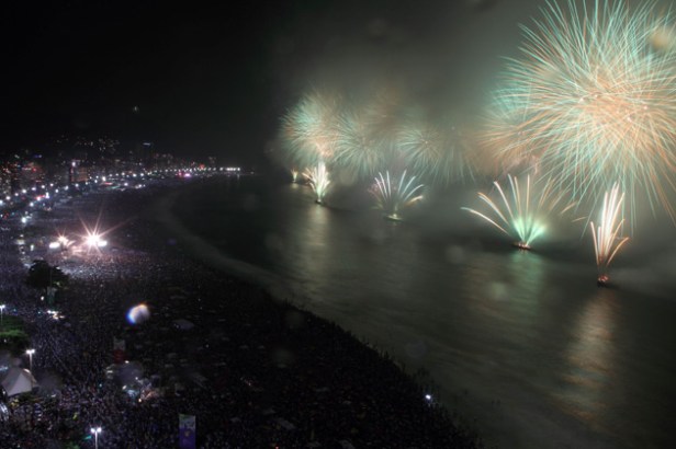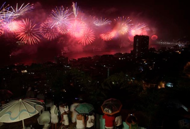 La fiesta en Copacabana fue seguida este año, por primera vez, por cientos de turistas desde las terrazas de las viviendas de la favela de Rocinha, la mayor barriada pobre de Río de Janeiro y que fue “pacificada” por la policía hace cerca de un mes tras décadas de dominio de bandas de narcotraficantes.