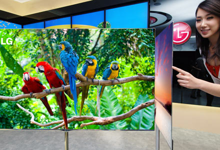 LG Electronics aprovechó el CES para presentar la pantalla OLED más grande del mundo: es de 55 pulgadas. Su diseño delgado y de bisel reducido da un aspecto minimalista: con sólo 4 mm de espesor y un peso de sólo 7.5 kg, esta pantalla prácticamente se funde con la pared. Lo que diferencia su imagen frente a otros televisores OLED es la tecnología de 4-Color Pixels, que permite una representación exacta del color mediante el uso de cuatro colores (rojo, verde, azul y negro) en comparación con el estándar RGB usado por otros fabricantes de televisores OLED. De acuerdo con el fabricante el dispositivo, cuyo precio todavía no se ha establecido, llegará al país en el segundo trimestre del año.