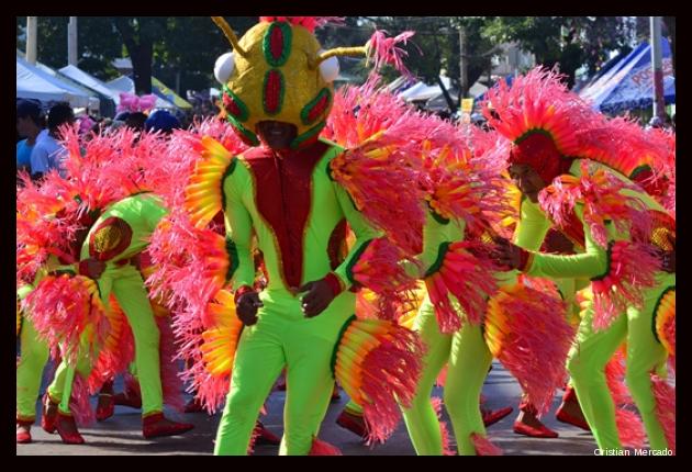 Son Los Tijeretos, de Mercaderes, Cauca, quienes reivindican la causa indígena a través del folclor, del goce, del baile y la música. Son un grupo de alrededor de 25 jóvenes que atravesaron Colombia, en un viaje de 36 horas en bus, para no perderse el Carnaval de Barranquilla.