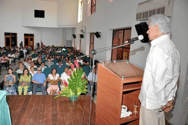 Estudiantes, docentes y personalidades de la música se congregaron ayer en el auditorio de la UPC, Sábanas, para rendirle tributo al folclorista Julio Oñate. Foto: Neftalí Castellar/VANGUARDIA)