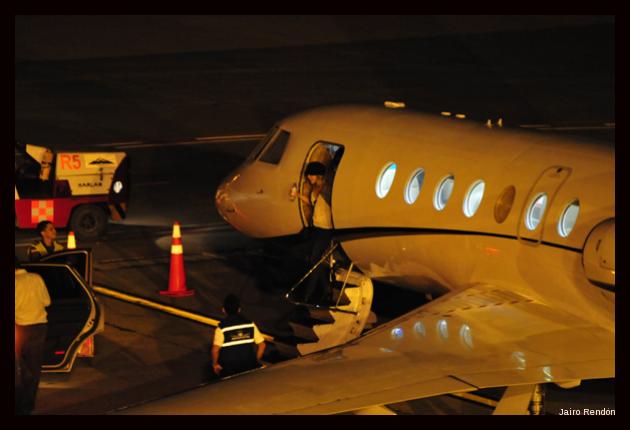 El jet N860BA fue la aeronave más esperada del día de ayer en el aeropuerto Ernesto Cortissoz. Desde antes de las cinco de la tarde, un par de camionetas blindadas lideraban el cordón de seguridad dispuesto para esperarlo y escoltarlo.