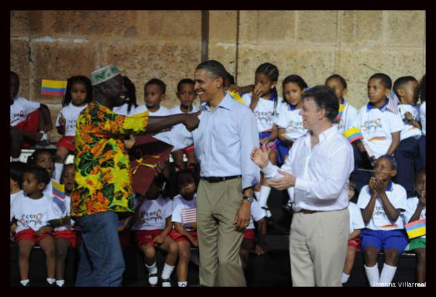 El progreso sí es posible. Rompiendo el protocolo y luego de que los esquemas de seguridad le informaran que todo estaba bajo control, el Presidente de los Estados Unidos bajó de la tarima y abrazó a los palenqueros y boquilleros quienes en medio de la emoción escuchaban las palabras pronunciadas por el mandatario estadounidense: “El progreso sí es posible”, les decía mientras los saludaba y de fondo se escuchaba la música de gaita preparada para la ocasión.