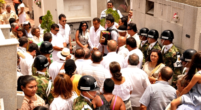 ‘Honda herida’, ‘La vieja Sara’ y ‘La brasilera’ resonaron en el silencio del Cementerio Central de Valledupar, cuando hasta la tumba del maestro se le llevó una ofrenda floral y su hija Taryn Escalona dijo que “hoy estamos perpetuando su memoria para que siga siendo recordado por todo lo que hizo, por su máximo amor a la música vallenata”.