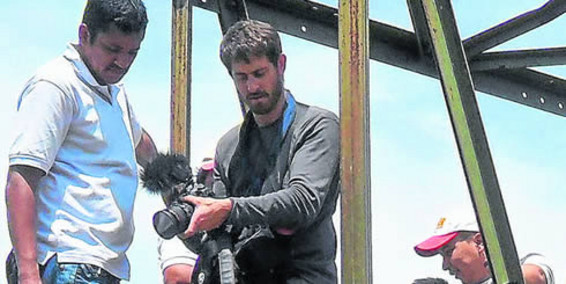 Roméo Langlois, en un cubrimiento en el Cauca, en medio de una protesta indígena.Foto: Efe / Tejido de Comunicación -Acin