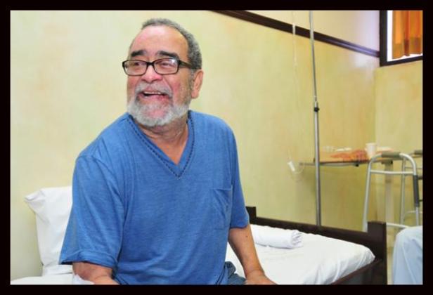El salsero Andy Montañez durante su estadía en Baranquilla, recuperándose del accidente y la posterior operación.
