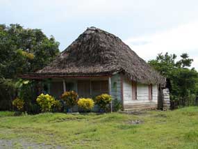 Las chozas nativas eran circulares, con la cubierta en forma de cono -el denominado caney-, o rectangulares -bohío- con techos de dos a cuatro vertiente o aguas elaboradas con elementos naturales.