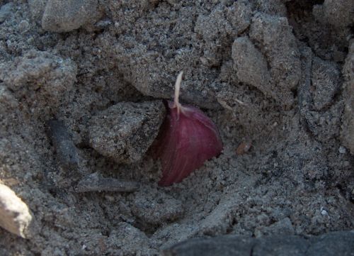 Si querremos cosechar cabezas, plantamos lo dientes cada 15 cm aprox, pero si vamos a cosechar ajos tiernos (ajetes) para ensaladas por ejemplo los plantamos mas juntos o simplemente ponemos la cabeza entera separando un poco los dientes. La profundidad a la que se planten dependerá del tamaño del bulbillo, aunque suele ser de 2-3 cm ó 4 a lo sumo, tapamos los dientes de ajo con tierra y luego cubrimos el suelo con un mulch de paja o pasto seco, hojas secas. A partir de la cuarta semana observaremos los brotes creciendo entre la cobertura. Crecen lentamente durante el invierno, pero en la primavera su desarrollo se acelera. A mediados de esa estación podemos «anudar» el follaje de las plantas para favorecer la formación de los bulbos.