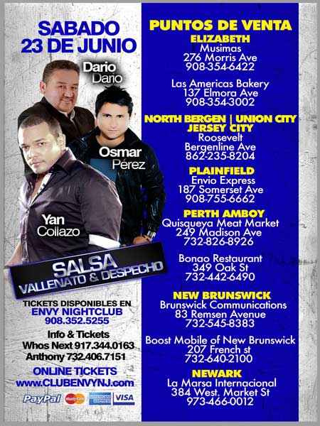 • Sábado 23 de Junio: Discoteca Envy Night Club – New Jersey