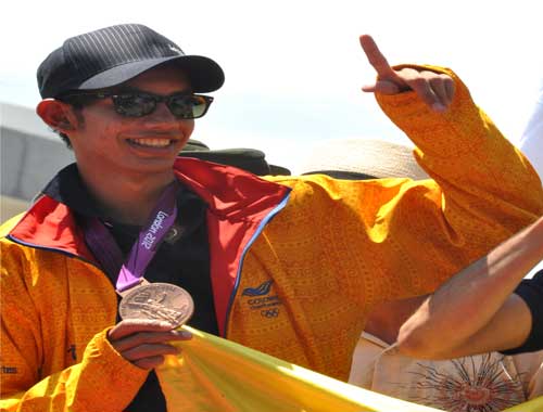 Detrás, una caravana de motociclistas y vehículos lo acompañó en su recorrido de honor, donde las calles abarrotadas de gente se abrieron con aplausos y frases que aclamaban al deportista que entregó todo en los Juegos Olímpicos de Londres 2012.