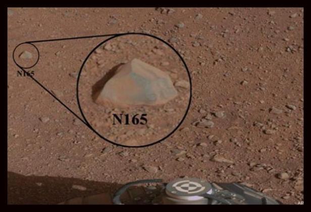 La Nasa nformó de que Curiosity utilizó el potente haz de luz de la ChemCam en la roca N165, apodada «Coronation» (Coronación), sobre la que disparó 30 veces su láser por un periodo de 10 segundos. (Cada disparo lanza más de un millón de vatios de potencia durante 5.000 millonésimas de segundo).