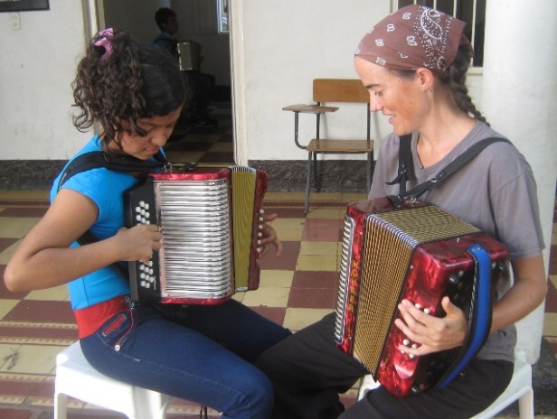 Ella, quien ejecuta varios instrumentos, entre ellos la guitarra y el acordeón piano, de inmediato se enamoró del acordeón de botones, y se trazó una nueva meta: aprenderlo a tocar en corto tiempo.