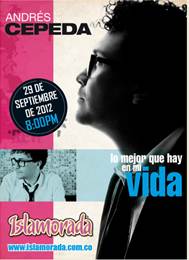 La Oficina de Comunicaciones del artista Andrés Cepeda, informa que por incapacidad médica, con diagnóstico de bronquitis asociado a una probable laringitis, el cantante no podrá cumplir la cita con sus seguidores de Islamorada, al concierto que estaba programado para el día sábado 22 de Septiembre con motivo de Amor y Amistad. La fecha fue reprogramada para el 29 de Septiembre a las 8:00 p.m.