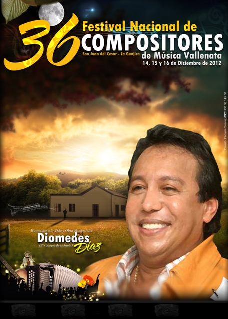 Del 14 al 16 de diciembre de 2012 tendrá lugar en San Juan del Cesar, La Guajira, el 36 Festival Nacional de Compositores de Música Vallenata, que en esta oportunidad será en homenaje al cantautor Diomedes Díaz ‘El Cacique de La Junta’.