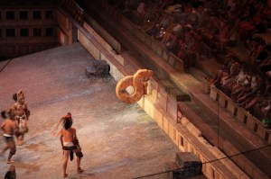 Mexico. Riviera Maya. Xcaret. Espectaculo nocturno. Juego de pelota prehispanico