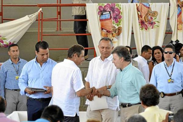 El presidente de la República, Juan Manuel Santos Calderón, le dijo al gobernador del Cesar, Luis Alberto Monsalvo Gnecco, que en el Departamento se piensa es en Ciudadela Universitaria. (Foto: Yajaira Otálora/VANGUARDIA )