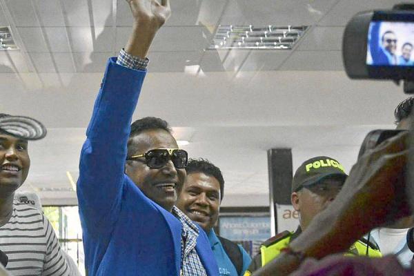 Diomedes Díaz llegó a Valledupar ayer en la tarde donde cientos de seguidores lo esperaron.(Foto: Yajaira Otalora/VANGUARDIA)