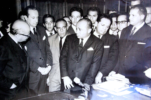 Momento histórico en que es sancionada la ley del 25 de Junio de 1967, por la cual se creó el departamento del Cesar. En la foto Carlos Lleras Restrepo, presidente de Colombia; Misael Pastrana, ministro de Gobierno; y José Antonio Murgas, ministro de Trabajo, acompañados de Clemente Quintero, Manuel Germán Cuello, y Alberto Herazo, entre otros, en representación del nuevo departamento.El Pilón