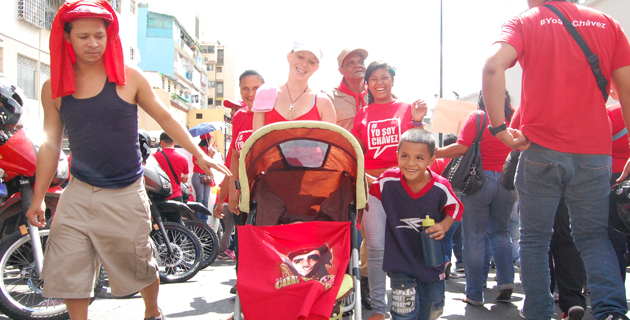 Sin importar distingo de edad o sexo, e incluso con mascotas, los seguidores del primer mandatario fueron vestidos con camisetas rojas, con diferentes mensajes estampados como “¡Uh!, ¡ah!, Chávez no se va”, “Chávez, corazón de mi Patria” o “Pa´ lante Comandante”, para expresarle apoyo a su líder, quien se encuentra en La Habana, Cuba, tras su cuarta operación contra el cáncer.