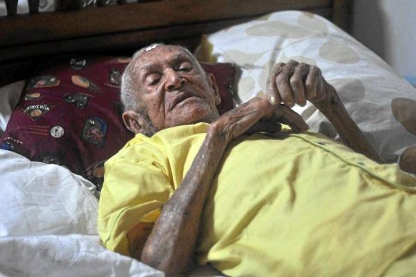 Aun que ya no puede caminar y permanece acostado en su cama matrimonial, no pierde la vitalidad para conversar, dar regaños, consejos e impartir órdenes.
