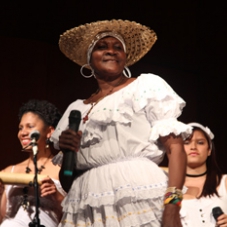 La cantadora Inés Granja Herrera nació en Timbiquí, Cauca, y es compositora de temas como “Sube la marea”, “Memoria de Justino”, “A navegar” y “Que baile el abuelo”, registrados con todos los proyectos musicales por los que ha pasado como Socavón, Canalón, y su grupo actual, Santa Bárbara de Timbiquí.