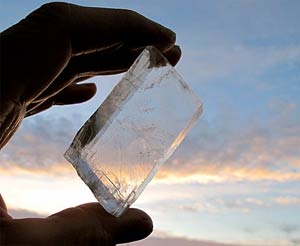 Con una pieza de cristal transparente muy parecida a la original, siguieron la pista del sol poniente con poca luz y durante una segunda prueba localizaron la posición del sol 40 minutos después que se hubo escondido.