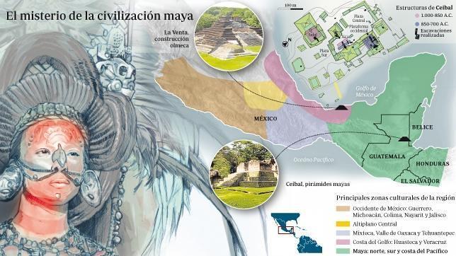 Cuando las comunidades sedentarias comenzaron a aparecer en las tierras bajas mayas del sur de México, Guatemala y Belice, durante el conocido como Periodo Preclásico Medio –entre los años 1.000 y 700 A.C.–, los olmecas de la Costa del Golfo ya estaban bien establecidos en regiones cercanas, sostienen los estudios tradicionales. Ellos habrían aportado el arte y las estructuras políticas a otras poblaciones. Así, el centro costero olmeca de La Venta presenta estilos arquitectónicos reconocibles en el enclave maya de Ceibal. Pero Inomata y su equipo, a través de mediciones de datación mediante radiocarbono, hacen retroceder algunas estructuras ceremoniales en Ceibal, como plazas y plataformas, dos siglos antes del desarrollo de La Venta. Eso supondría que las pirámides en Ceibal probablemente se originaron tras amplios intercambios culturales que se dieron a lo largo del sur de Mesoamérica desde 1.150 a 800 A.C.