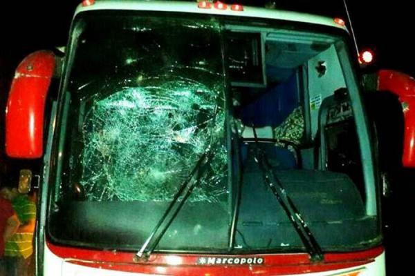 Todos los vidrios del bus en el que se transportaba la agrupación de Martín Elías y Juancho De la Espriella fueron rotos por algunos asistentes al evento, enfurecidos por el incumplimiento del artista.