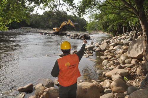 Los espolones de mitigación se construyen con piedras del mismo afluente, las que se levantan del lado izquierdo, por donde los expertos de la Secretaría de Obras y del Batallón de Ingenieros consideran que las corrientes de agua generan menos daños y que hace algún tiempo era el cauce natural de la afluente.