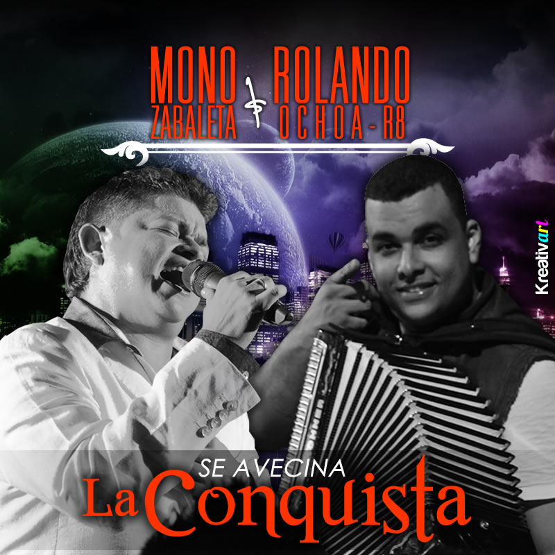 “Nuestro proyecto cada día va tras La Conquista de más y más seguidores, esa es la razón del nombre de la primera producción que grabamos con el Mono Zabaleta”, así resume el acordeonero, compositor y arreglista Rolando Ochoa “R8”, la identificación del primer compacto que adelanta con su compañero de fórmula en los estudios R8 Sound de Valledupar.
