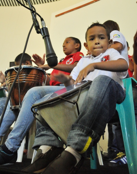 En medio de esa cantidad de pequeños músicos sobresalía Josué David Carmona Orozco, con tan solo cinco años, recién cumplidos, y quien ejecuta la caja.