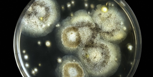 Ejemplo de una placa de Petri con muestras de levadura, en una vista microscópica.