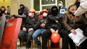 En Donetsk, la milicia popular confirmó a través de la red social rusa Vkontakte que mantiene fortificado el control sobre la sede del Consejo de Seguridad regional, ocupada la víspera.