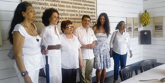 De izquierda a derecha: Luisa Uribe Márquez, Gina Uribe Márquez,Aída García Márquez, Fidel Vargas, María Zabay y Lucy Valderrama, durante la visita a la casa museo.