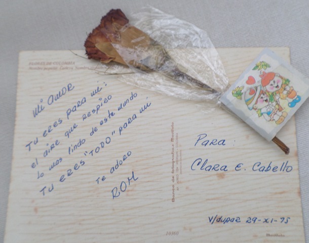 Postal y flor de Rafael Orozco para Clara Cabello. Foto Jimmy Silvera