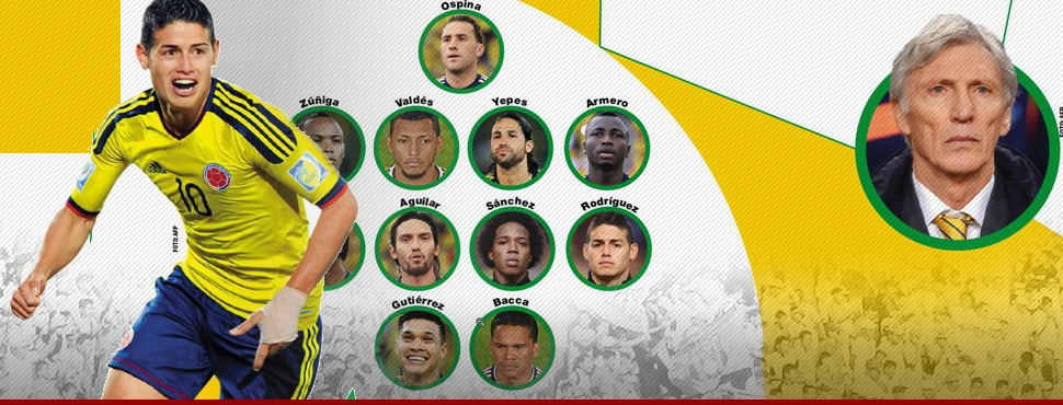 Pékerman cuenta con materia prima. Reunió lo mejor de cada generación juvenil. Ospina, Guarín, Aguilar, Zúñiga y Zapata de Holanda 2005, y James de Colombia 2011. Las frustraciones de 2007 y 2009 dejaron algunos proyectos en el camino. El entrenador encontró referencias en los vigentes Mondragón y Yepes, quienes predican con el ejemplo. Convenció a Teo Gutiérrez de convertirse en un valioso futbolista complementario. Tiene gol a pesar de la ausencia de Falcao. Jackson Martínez y Bacca están listos para reemplazar a Radamel. Se despliega en un 4-2-3-1 con un nueve de área. Los laterales despegan simultáneamente y un mediocampista se para como tercer zaguero para no quedar mano a mano en el fondo. El equipo toca con sentido. A veces para la distracción y el engaño hasta que aparezca el pase profundo para generar desborde por los costados.