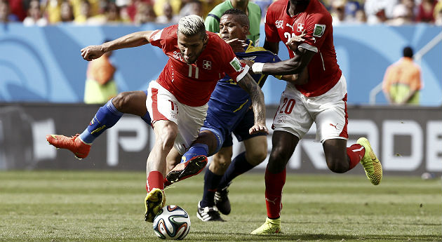 Suiza se ha impuesto hoy a Ecuador por 2-1 con un gol en la prolongación, en el primer partido del grupo E del Mundial de Brasil 2014.