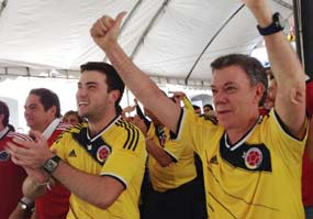 Santos manifestó que este histórico regreso de la tricolor a un mundial tras 16 años de ausencia sube el ánimo, la adrenalina y el optimismo a los colombianos. El fútbol rompe barreras y mueve montañas, estamos haciendo un papel muy positivo y esto nos enorgullece a todo, dijo.