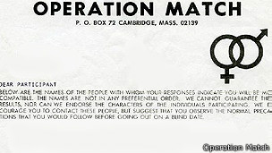 Operación Match, el primer programa de computador para citas amorosas del mundo, diseñado en la Universidad de Harvard. Así se hacían parejas.