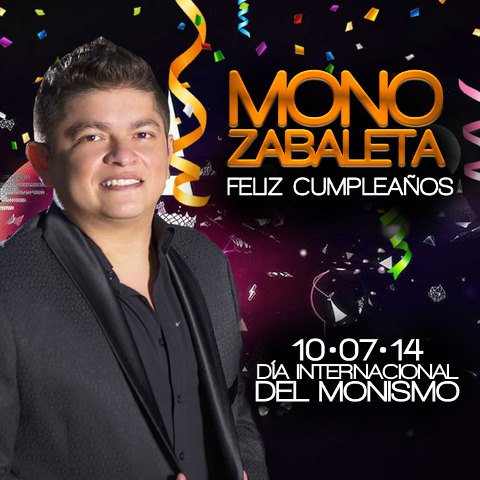 …Y llegó el momento esperado, la fecha especial en la que el Mundo del Vallenato celebra el Día Internacional del Monismo, con motivo del cumpleaños de nuestra voz líder, el MONO ZABALETA, por ello la Organización Musical Mono Zabaleta & Rolando Ochoa te felicita y desea que disfrutes con inmensa alegría cada instante de este, tu día.
