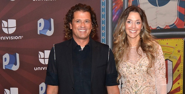 Carlos Vives junto a su esposa Claudia Helena Vásquez, durante la alfombra roja de los Premios Juventud.