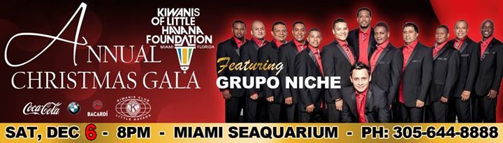 Después de un gran concierto en una presentación musical empresarial en Ciudad de México, anoche, el GRUPO NICHE partió hoy de la capital azteca hacia Miami para presentar esta noche del sábado 6 de diciembre su concierto en una importante gala benéfica organizada por «Kiwanis of Litlle Havana Foundation», evento que se realiza anualmente en la época decembrina en la capital del sol.