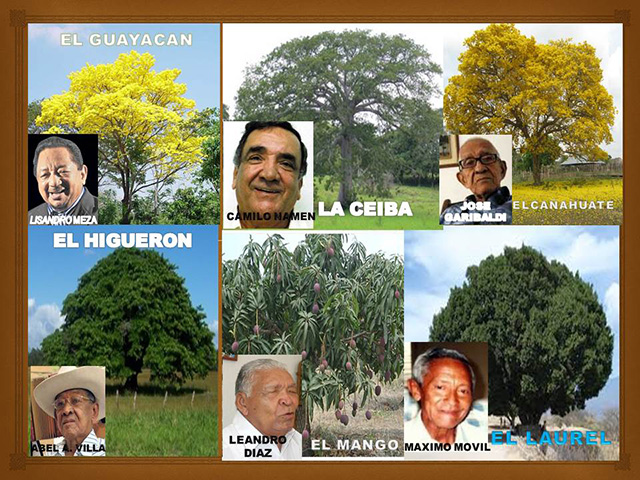 “LA CEIBA”: Un árbol de contextura gruesa y de tamaño enorme, sufre un cambio de hojas en la primavera y a fin de año, que pareciera secarse y quedan en sus ramas unas flores que brotan una seda fina que vuela por todos lados. Algunos coterráneos utilizan la leche que sale de su tallo, para purgar el organismo, lo hacen en época de luna menguante.
