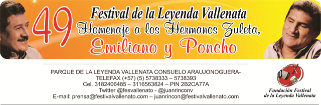 La Junta Directiva de la Fundación Festival de la Leyenda Vallenata en reunión realizada el 5 de mayo en horas de la tarde en las instalaciones del Parque de la Leyenda Vallenata ‘Consuelo Araujonoguera’, decidió por unanimidad rendir homenaje en el 49 Festival de la Leyenda Vallenata a realizarse a finales del mes de abril del próximo año a los Hermanos Zuleta, Emiliano y Poncho.