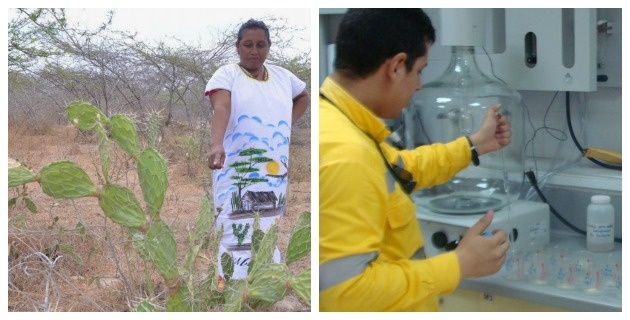 Mujer wayuu muestra la tuna que crece en el territorio. Ingeniero químico Jairo Núñez durante las pruebas de laboratorio.