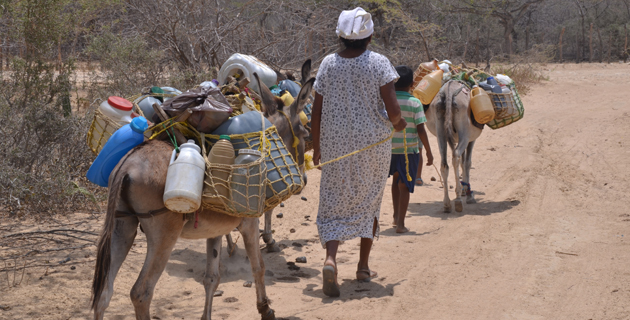 En Youleisho no hay pozo, ni molino, solo un tanque negro que tiene inscrito sobre el plástico la palabra prosperidad en un tinta reseca y pálida. Son 10 mil litros de agua mensuales para 50 familias de 4 personas en promedio. En la ranchería llaman al burro, ‘carrotanque de cuatro patas’, porque es el que diariamente atraviesa kilómetros bajo el sol para traer agua a las personas y a los chivos.
