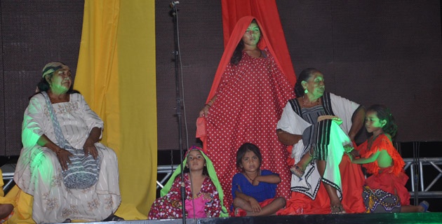 Dramatización de la comunidad wayuu en la tarima del evento, en La Guajira.
