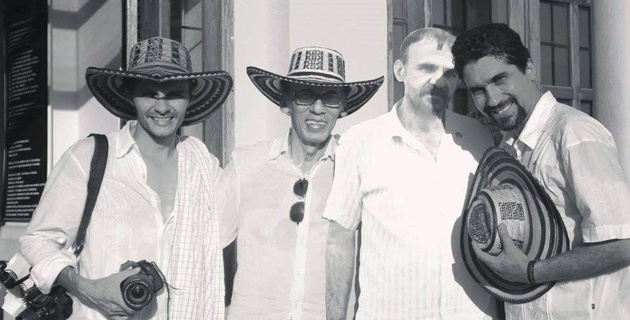 Ricky Pinilla, el actor Jorge Herrera, Raúl Gómez y el director Ensuncho De La Bárcena en un momento de descanso de las grabaciones.