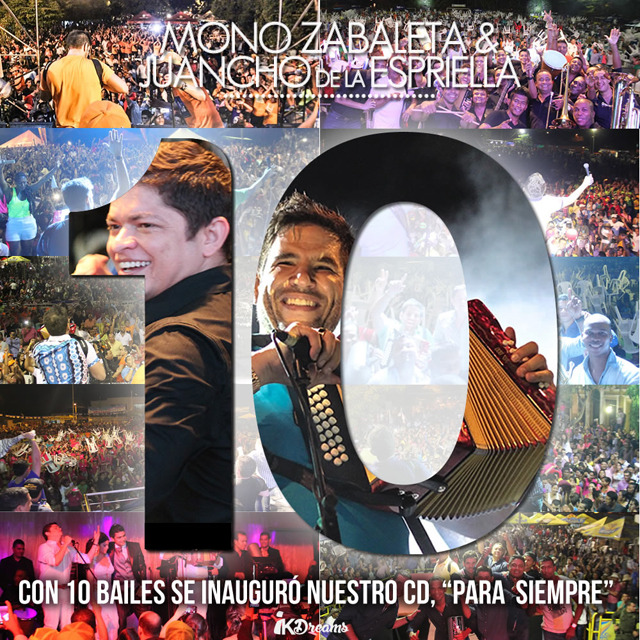 Con gran aceptación del público se dio inicio este fin de semana al TOUR PARA SIEMPRE. Fueron 10 presentaciones, incluido el Concierto de Lanzamiento en la ciudad de Valledupar, en 6 días, en los cuales recorrimos 7 departamentos, para disfrutar con el Mono Zabaleta & Juancho de La Espriella lo que ha sido la salida al mercado de su primera producción musical.